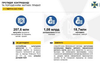 У першому півріччі 2021 року СБУ вилучила предметів контрабанди і виявила порушень митних правил на 207,6 млн грн. Вилучення відбувалися у межах 53 досудових розслідувань. Серед предметів контрабанди, зокрема: зброя, заборонені речовини, деревина, культурні цінності тощо.