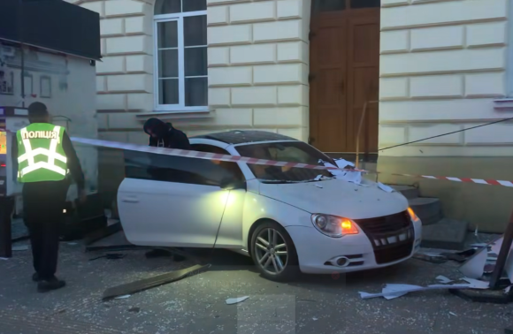 Друге авто, теж учасник ДТП, стоїть біля кафе з круасанами. Як все було - точно незрозуміло, але як розповідають свідки, швидкість в автівки була просто неймовірною. 14 річний підліток погодився дати покази. Поліція почала знімати дані з навколишніх відеокамер.