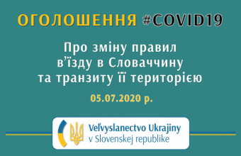 Відповідно до ухваленого Центральним кризовим штабом Словацької Республіки рішення з 8 години (за київським часом) шостого липня змінюється порядок в’їзду до Словаччини з території України.