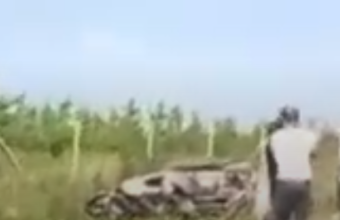 На відео - розбитий вщент легковик, який лежить в кюветі, і вантажівка - з пресованими тюками соломи, розвернута на узбіччі.
