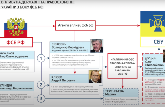 За завданням фсб рф ексзаступник секретаря РНБО Володимир Сівкович (в минулому офіцер КДБ СРСР) та колишній глава Адміністрації Президента України Андрій Клюєв, які з 2014 року переховуються від правосуддя у Москві, створили так званий «політичний офіс» для контролю за діяльністю впливових українських політиків, високопосадовців та правоохоронців, пошуку в їхньому середовищі агентів впливу для контролю за політичними процесами в українському суспільстві.
