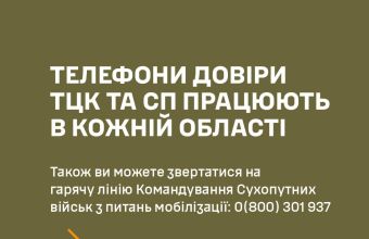 Сухопутні війська просить усіх, хто стикається з протиправними діями військовослужбовців ТЦК та СП, має питання щодо мобілізації та військового обліку у своєму регіоні, звертатися: