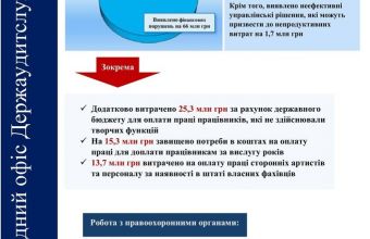 Зокрема, всупереч вимогам законодавства театром при формуванні та затвердженні штатних розкладу значно завищені потреби в коштах на оплату праці для здійснення працівникам доплати за вислугу років. У підсумку з бюджету зайво отримано та використано майже 15,3 млн гривень. Через застосування додаткових коефіцієнтів до окладів працівників додатково витрачено 25,3 млн гривень за рахунок коштів загального фонду державного бюджету. Загалом незаконні витрати Львівської опери досягають 17,7 млн гривень.