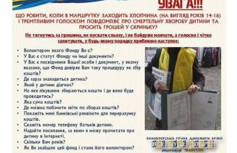 Понад 20 громадських організацій Львова оголосили боротьбу з волонтерами-шахраями. Щовихідних активісти з міліціонерами проводять рейди. Затримали для роз'яснень представників організації «Шанс на життя».Один з організаторів акції Олег Радик розповів: