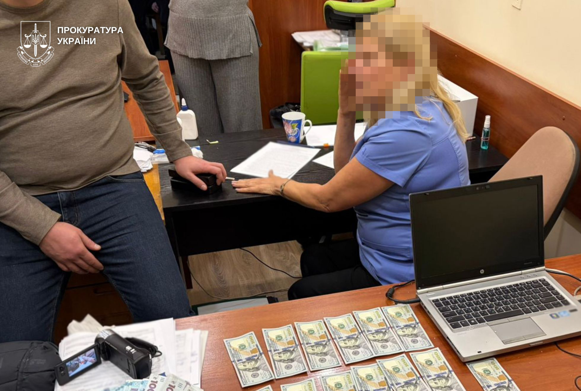 Під час обшуків в її робочому кабінеті виявлено та вилучено медичну документацію, чорнові записи та гроші.