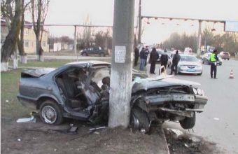 Для прикладу – ось так врізався в електроопору водій автомобіля «ВМW» у Херсоні