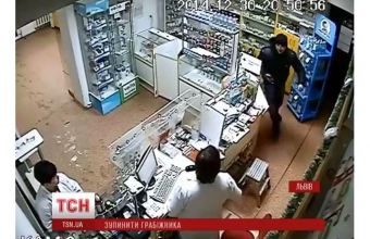 «У Львові працівниця аптеки не дозволила озброєному грабіжнику забрати гроші з каси. Із камер відеоспостереження видно, як чоловік без маски на обличчі зайшов у приміщення та став вимахувати пістолетом.