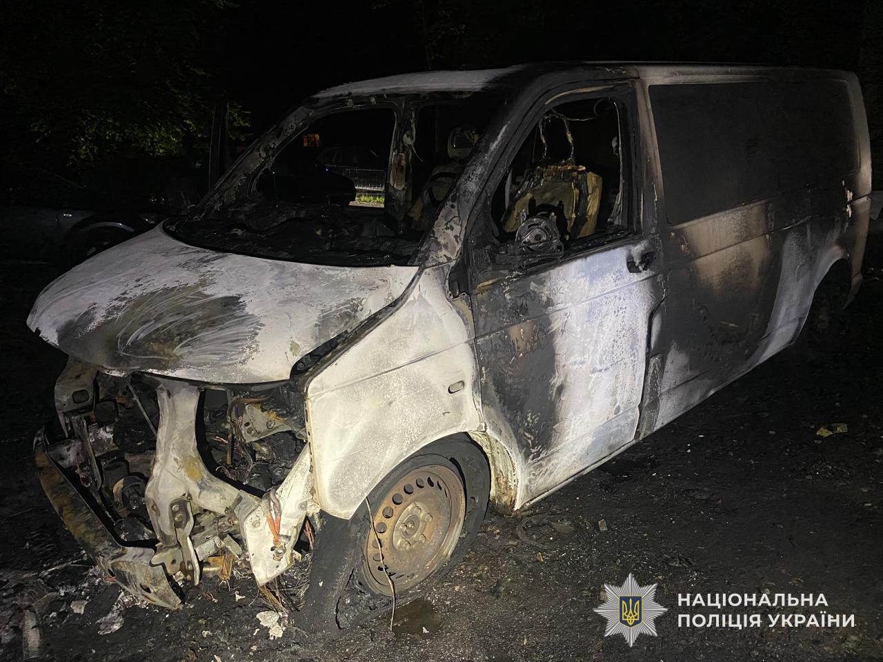 Після локалізації пожежі поліціянти встановили, що вогнем був суттєво пошкоджений мікроавтобус Volkswagen T4, який належить 42-річному місцевому мешканцю. Приїхавши додому, він залишив транспортний засіб на ніч біля під’їзду. Причиною пожежі був підпал.