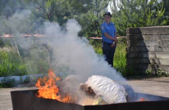 «Сьогодні, 8 червня, працівники Першого територіального управління Департаменту протидії наркозлочинності у присутності спеціально створеної комісії здійснили знищення наркотичних засобів, які були вилучені з незаконного обігу. У вогні знищено понад сорок кілограм рослинних та синтетичних наркозасобів.