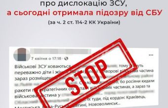 Як повідомляють в СБУ, зловмисниця постила матеріали, які дають можливість ідентифікувати на місцевості розташування військовослужбовців ЗСУ. Наслідки такої публікації могли бути фатальними для наших захисників, адже ці дані заборонені для поширення.