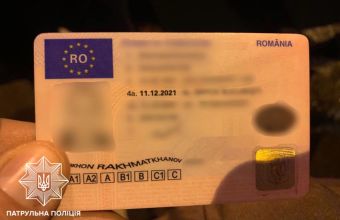 Поліційні виявили, що з 30-річний іноземець вже впродовж восьми років живе в Україні, а дозволу на це він не має. А посвідчення водія він отримав минулого року в одній зі сусідніх держав. Зі світлини видно, що це - Румунія.