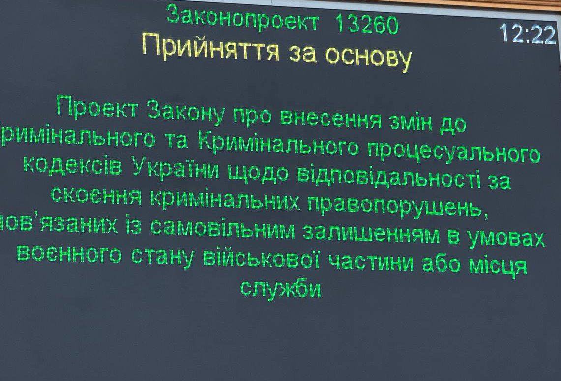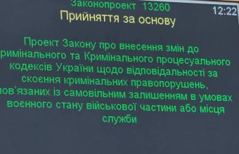 Відповідні зміни вносяться до Кримінального та Кримінального процесуального кодексів. Законопроєкт стосується відповідальності за самовільне залишення військової частини або місця служби в умовах воєнного стану.