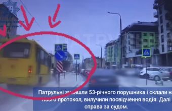 "Вчора удень в одній із соцмереж опублікували відео грубого порушення правил дорожнього руху водієм маршрутки, - йдеться у дописі патрульних поліціянтів. - Він ледь не зніс двох пішоходів, які були вже на середині переходу. Не забавляючи швидкості, маршрутка поїхала далі. Двох перехожих врятувало диво і їх блискавична реакція.