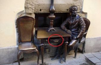 Злодії вкрали бронзову шухляду з пам’ятника винахідникам гасової лампи у Львові