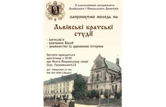 «У Львові при Покровському соборі Української Православної Церкви Київського Патріархату на вулиці Грушевського, 2 започатковують братські студії. Заняття розпочинаються у п’ятницю, 11 грудня, о 19.00 і відбуватимуться щоп’ятниці. До участі запрошують молодь», – повідомили сьогодні, 11 грудня, «Щоденному Львову» в прес-службі міської ради, де також розповіли подробиці: