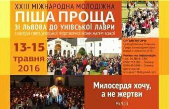 «13-15 травня з нагоди свята чудотворної ікони Унівської Богородиці відбудеться ХХІІІ Міжнародна молодіжна піша проща «Львів-Унів», – повідомили «Щоденному Львову» в прес-службі міськради, де також розповіли подробиці: