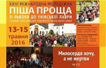 13-15 травня відбудеться молодіжна піша проща «Львів-Унів»