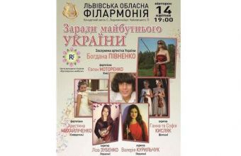 14 квітня о 19.00 у Львівській обласній філармонії (Концертний зал імені Станіслава Людкевича на вулиці Чайковського, 7) пройде концерт класичної музики для підтримки дітей вимушених переселенців. Участь у концерті візьмуть талановиті діти-музиканти зі Сходу України та АР Крим.