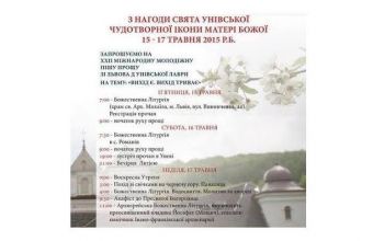 15-17 травня з нагоди свята чудотворної ікони Унівської Богородиці, відбудеться ХХІІ Міжнародна молодіжна піша проща «Львів-Унів». Цьогоріч тема співзвучна з надією та впевненістю – «Вихід є. Вихід триває».
