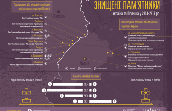 За три роки у Польщі було зруйновано або осквернено 15 пам’ятників українцям. А в Україні – чотири польських. При цьому усі відновлено коштом української сторони, у той час як у Польщі – жоден. Про це повідомили в Інституті національної пам’яті, який представив інфографіку руйнувань та пошкоджень пам'ятників, створену спільно зі студією «Remarker».