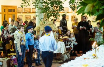 Під час Святвечора діляться Різдвяним хлібом – оплаткою. Отець Григорій Драус розповів також: «Хочемо у широкому колі наших друзів пережити Різдво так, як ми святкуємо його вдома, і поділитися цим скарбом з іншими. Святкування розпочнуться 24 грудня о 21:00. Святвечором, під час якого освятять вертеп. Ділячись Різдвяним хлібом («оплатком»), ми будемо складати один одному найщиріші побажання. А зі самого Вифлеєму буде принесений святий вогонь. Також, співаючи колядки, усі учасники Римського Різдва зможуть власноруч виготовити різдвяні прикраси».