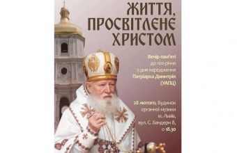 У неділю, 28 лютого, в Будинку органної та камерної музики на вулиці Степана Бандери, 8 відбудеться Вечір пам’яті патріарха Української автокефальної православної церкви Димитрія (Яреми) «Життя, просвітлене Христом», присвячений 100-річчю від дня його народження. Початок – о 18:30. Вхід – вільний.