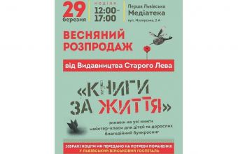 У неділю, 29 березня, з 12:00 до 17:00 «Видавництво Старого Лева» та Перша Львівська Медіатека запрошують на свято для усієї родини – великий весняний розпродаж «Книги за життя». Акція відбудеться у Першій Львівській Медіатеці (вул. Мулярська, 2А – позаду ринку «Добробут»).