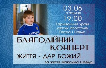 «3 червня о 19.00 у Гарнізонному храмі святих апостолів Петра і Павла на вулиці Театральній, 11 відбудеться благодійний концерт на підтримку Максима Шведа, який потребує пересадки кісткового мозку – плвідомили в понеділок на інформаційному порталі пасторального та соціального служіння, де також розповіли подробиці:
