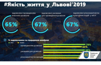 Про це повідомили в понеділок, 23 грудня, у Львівській міськраді, де також розповіли, що в дослідженні взяли участь близько 1200 львів’ян. 65% із них запевнили, що задоволені проведенням власного дозвілля.