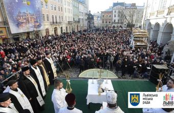 У суботу, 19 січня, на свято Богоявлення, перед входом у міську раду на площі Ринок традиційно відбувся щорічний чин освячення води за участю духовенства усіх християнських конфесій міста.