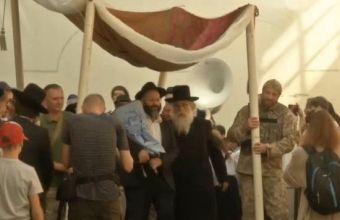 Балдахін під час внесення у синагогу нового сувою Тори, створеного на кошти меценатів з єврейської громади США, несли юдеї-військовослужбовці ЗСУ.