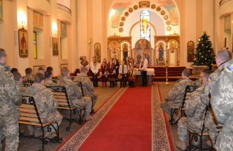 Спів на святковому Богослужінні провадила вокальна формація Гарнізонного храму святих апостолів Петра і Павла – «Мodus Vivendі». Опісля до військовослужбовців завітав вертеп з Родинного дому Згромадження сестер Пресвятої родини з міста Бібрка.