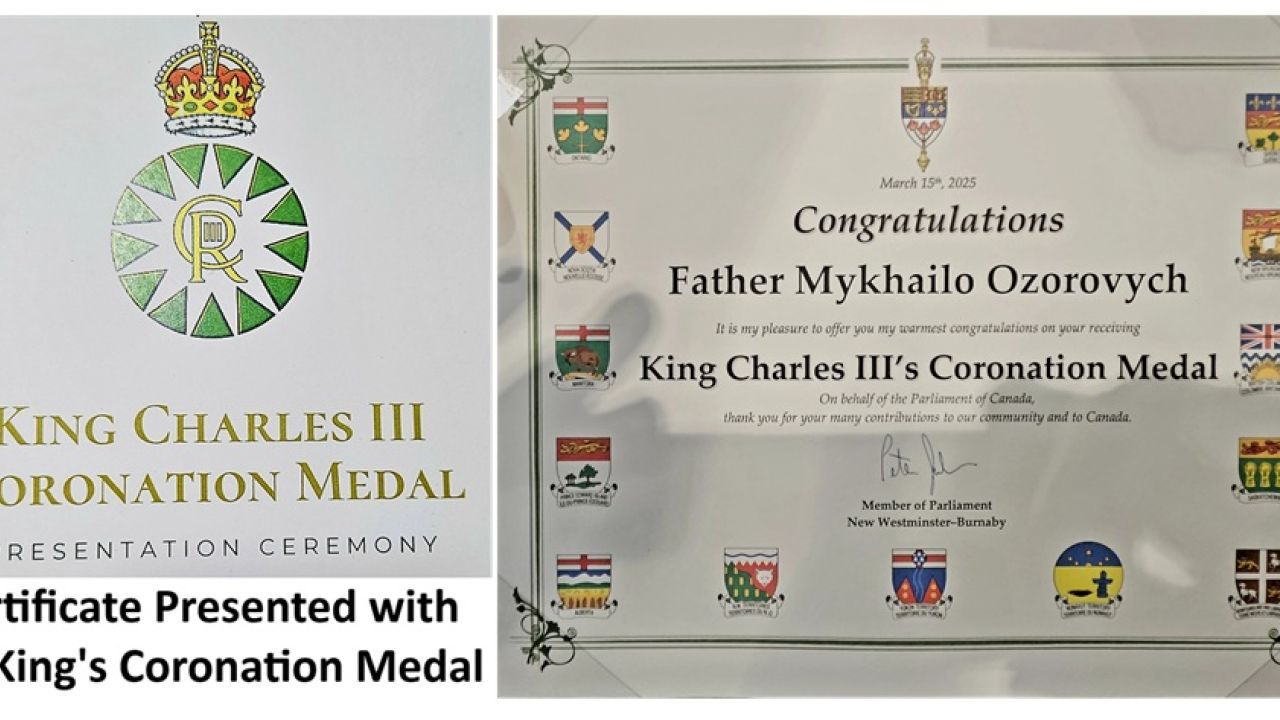 Генерального вікарія Нью-Вестмінстерської єпархії УГКЦ та ректора катедрального собору Пресвятої Євхаристії о. Михайла Озоровича 15 березня відзначили Коронаційною медаллю короля Чарльза III.