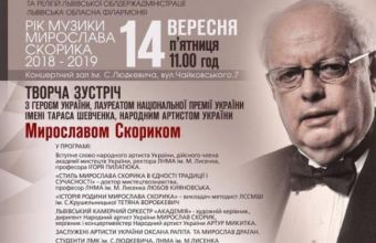 У п’ятницю, 14 вересня, об 11.00 у Львівській філармонії розпочнеться творча зустріч з Героєм України, лауреатом Національної премії України імені Тараса Шевченка, народним артистом України Мирославом Скориком.