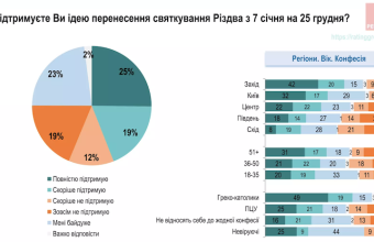 Також за рік значно побільшало тих, хто підтримує ідею перенесення святкування Різдва на 25 грудня: з 26% до 44%. Проти такої ідеї – 31% (у 2021 – 58%). Ще 23% зазначили, що їм байдуже це питання і 2% - не змогли відповісти.