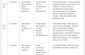 Про це поінформували сьогодні, 10 серпня, в прес-службі Львівської міськради, де також опублікували програму святкування Дня Незалежності України.