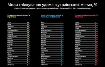Зокрема, в Луцьку й Рівному 97% людей спілкуються вдома українською мовою. На відсоток менше – в Тернополі.