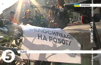 «Львів’яни приєдналися до всеукраїнського флешмобу і теж добирались на роботу велосипедом. Перед подорожжю, власники двоколісних влаштували на площі Ринок пікнік. Просто неба поснідали бутербродами та гарячим чаєм.
