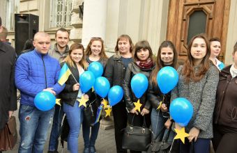 У Львівській міськраді повідомили в четвер: «Сьогодні, 11 травня, перед Львівською ОДА відбувся перформанс з нагоди схвалення Радою міністрів Євросоюзу остаточного рішення щодо надання громадянам України безвізового режиму. Учасники акції випустили в небо 150 кульок та виконали гімн Європейського Союзу та України».