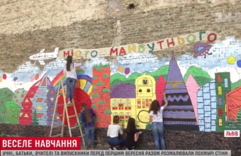 У Львові похмурий фасад однієї з шкіл за літо перетворили на різнобарвне полотною. За пензлі взялися і діти, і батьки з вчителями. І навіть випускники школи. Гроші на це збирали на конкурсах з благоустрою. А коли фінансів забракло, діти зорганізували ярмарки і продавали власні вироби.
