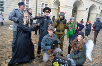 У центрі Львова на Різдвяні свята з'явився дещо нетрадиційний вертеп. Зокрема, крім типових персонажів – Звіздаря, Ангела, Жида та Смерті присутні також повстанці – воїни УПА, чортик-енкаведист та Ірод Сталін.