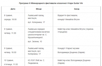 «Guitar Vik» – унікальна можливість для львів’ян та гостей міста почути музику для класичної гітари, написану в різні епохи, композиторами різних країн, у виконанні найкращих виконавців України та зарубіжжя. Фестиваль розширив свої горизонти і вперше відбуватиметься як міжнародний», – поінформували також у міськраді, де також опублікували «Програму ІІІ Міжнародного фестивалю класичної гітари «Guitar Vik».