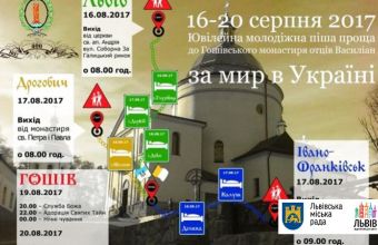 У Львівській міськраді повідомили сьогодні, 11 серпня: «16-20 серпня відбудеться ювілейна молодіжна піша проща до Гошівського монастиря отців Василіян за мир в Україні. Учасників запрошують долучатись із трьох локацій – Львова, Дрогобича та Івано-Франківська».