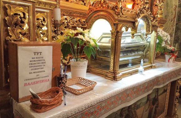 Покровителя усіх закоханих також вважають цілителем від так званої чорної хвороби – епілепсії. І біля мощів святого, як розповідають у церкві Різдва Пресвятої Богородиці, відбулося кілька чудесних зцілень від цієї страшної недуги. Але найбільше до великомученика приходять і просять подарувати чи повернути кохання. Їдуть з України, Польщі, Італії. Нещодавно до Самбора приїжджала жінка з Польщі і подарувала церкві маленьке серце, виготовлене із золота. З’ясувалося, що рік тому біля мощів святого вона просила повернути кохання в родину сина і невістки. І тепер прибула подякувати за те, що кохання повернулось. Сьогодні, 14-го лютого, єдиний день у році, коли з бічного престолу церкви Різдва Пресвятої Богородиці знімається скляний саркофаг і труна з мощами Святого Валентина виставляється до почитання на тетраподі в центрі церкви. І на урочистій службі звучатиме молитва.