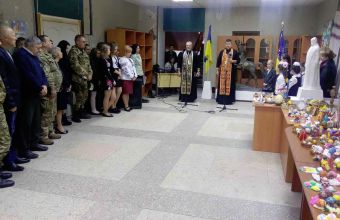 Освятили писанки військові капелани – отці Валентин та Олександр. А діти привітали гостей виставки українськими піснями та великодними віршами.
