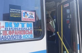Також відповідні наліпки розмістили на автобусних маршрутах Автовокзалу «Північний» (АС-2).