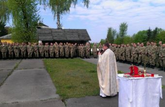 «У неділю, 3 травня 2015 року, військові капелани Львівської архиєпархії, о. Михайло Сукмановський, о. Тарас Михальчук та бр. Юрій Балух, молились Святу Літургію з бійцями Нацгвардії, які беруть участь в українсько-американських навчаннях. Солдати просили у Господа мира в Україні та добра для всього українського народу.