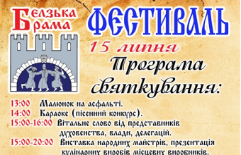 15 липня о 13:00 на площі біля міської ради Белза розпочнеться міжнародний фольклорний фестиваль «Белзька брама».
