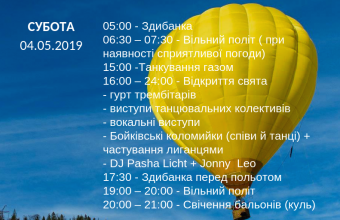 Про це повідомили у вівторок, 23 квітня, в прес-службі Львівської ОДА, де також розповіли: «Програмою заходу заплановано бойківські гуляння, частування лиганцями, пісні та танці під музику колоритних музичних колективів і вечірка під відкритим небом разом з «Dj Pasha Light» та «Johnny Leo». Родзинкою фестивалю стануть повітряні кулі, всі охочі зможуть піднятись в небо і з висоти пташиного польоту побачити Українські Карпати».