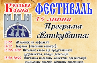 15 липня о 13:00 на площі біля міської ради Белза розпочнеться міжнародний фольклорний фестиваль «Белзька брама».